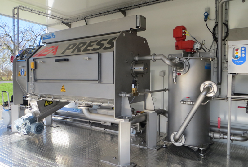 Med indbygget anlægsstyring, transportsnegl, trykluft, varme og lys, skal der kun strøm og et par slangeforbindelser til, inden slamafvandingen kan startes op.